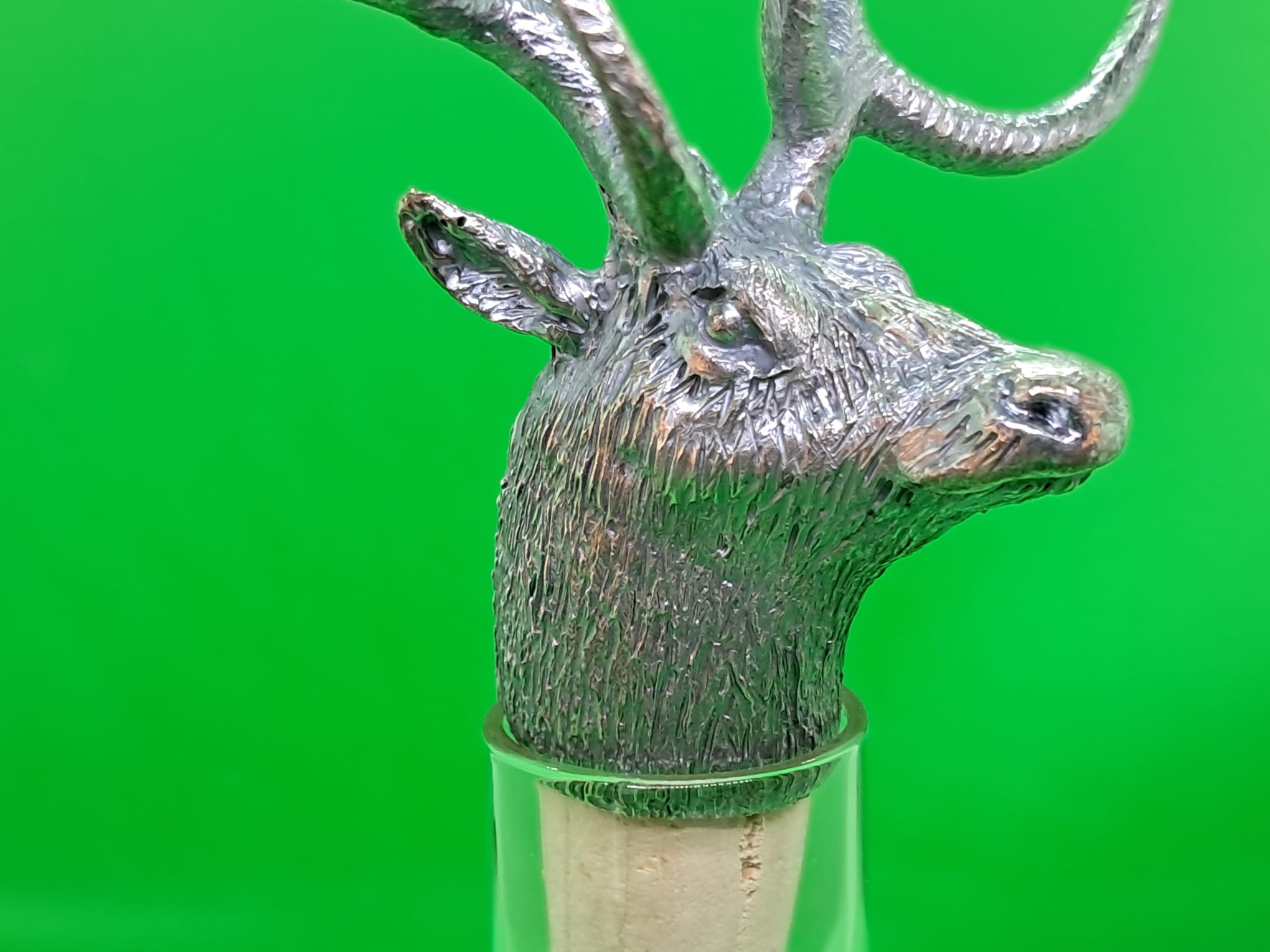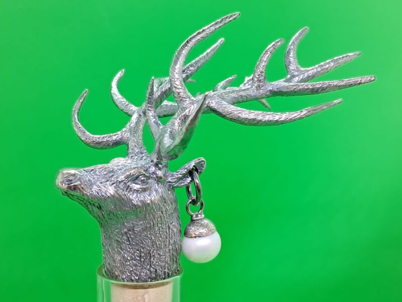 Tappo in bronzo argentato alto spessore per bottiglie tappo sughero, con perla.