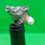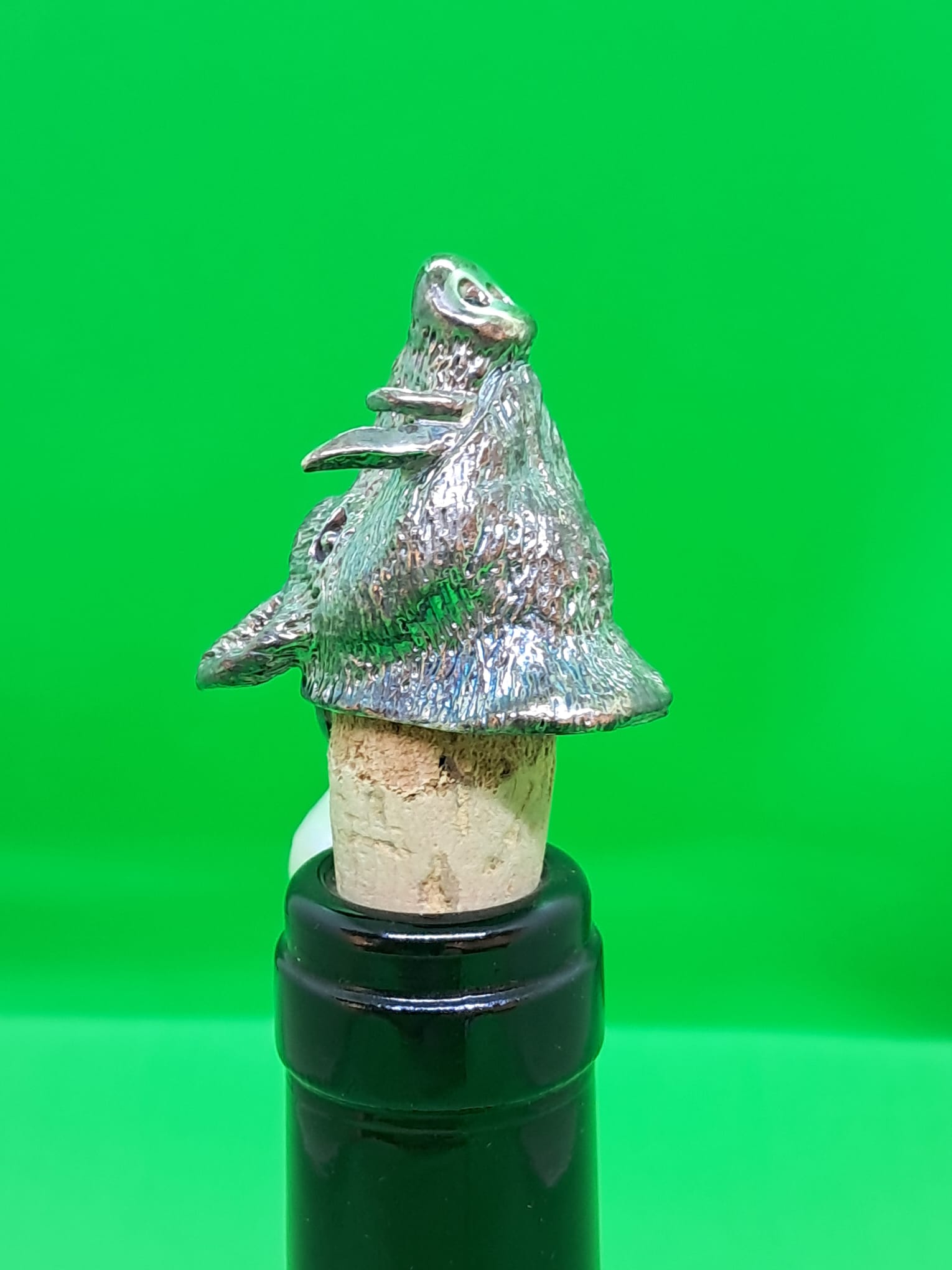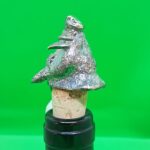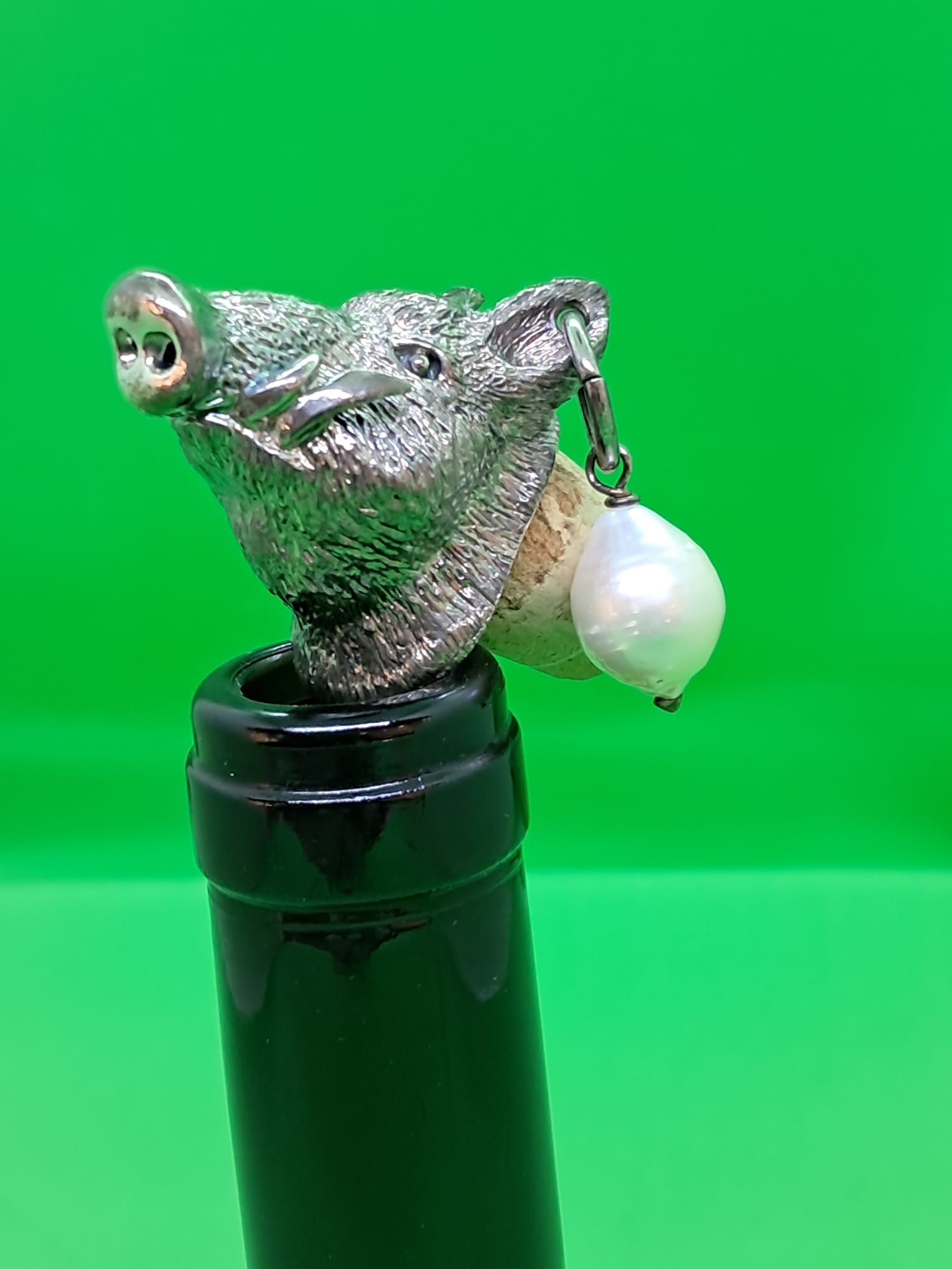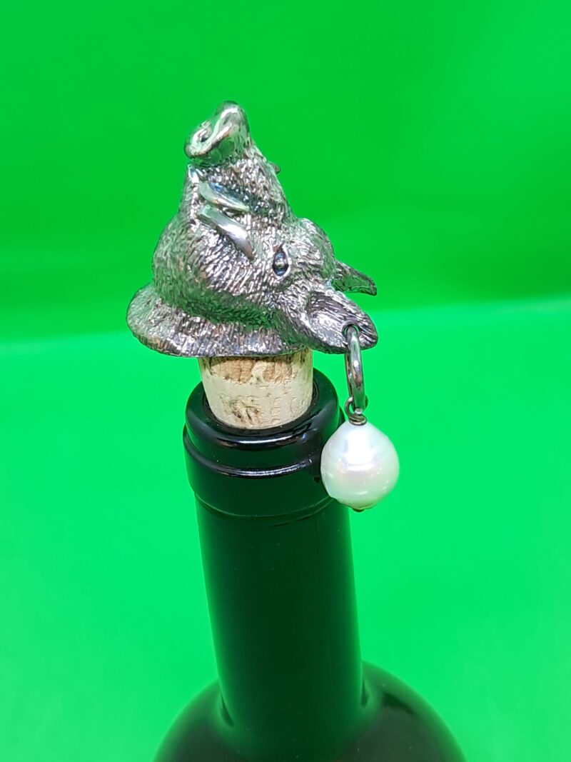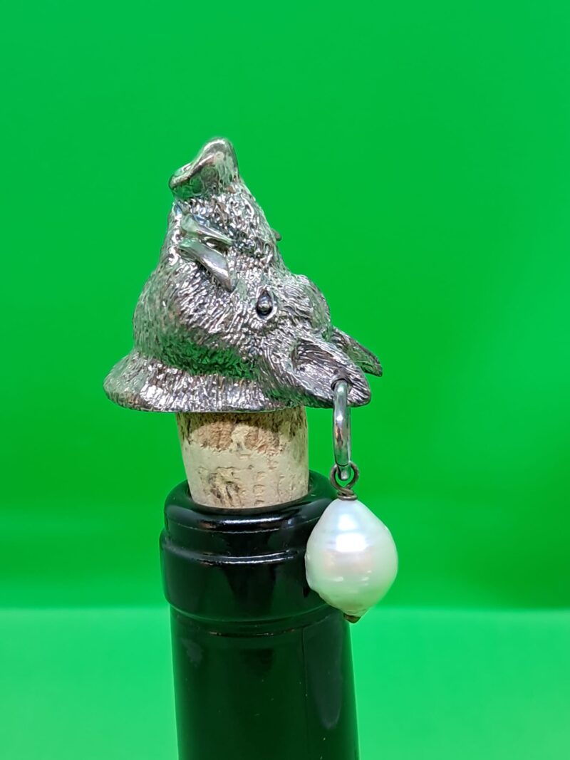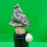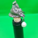 Tappo in bronzo argentato alto spessore per bottiglie tappo sughero, con perla.